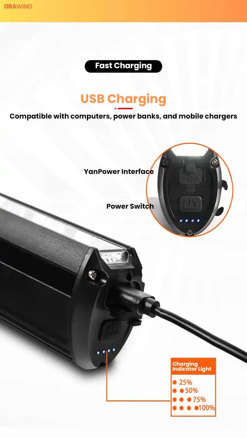1. Ultra Bright LEDs : 5 x P9 LEDs, up to 3250 lumens, wide 170° illumination.