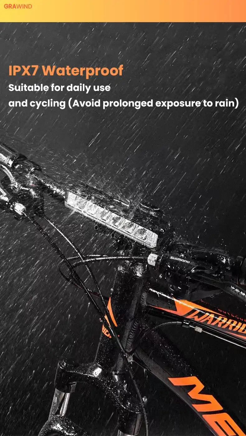 7. IPX5 Waterproof: Withstands heavy rain, everyday riding.