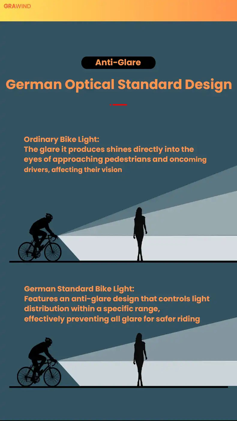 2. Anti-Glare Design: German optical standard, safe for oncoming riders.