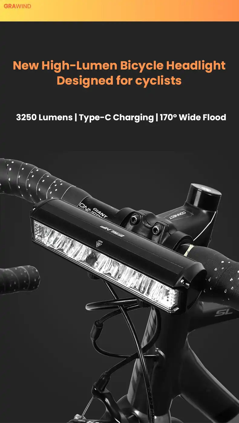 SUPER BRIGHT SMART BIKE FRONT LIGHT – USB RECHARGEABLE 1800 LUMEN